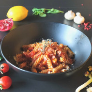 Fusilli cremoase intr-un sos bogat din smantana pentru gatit, cheddar, mozzarella si parmezan, completate de bacon crocant si un strop de piper. Un preparat reconfortant, perfect pentru pofta de ceva consistent si savuros.