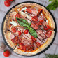 Ingrediente: blat pizza, sos de rosii, mozzarella, prosciutto cotto, salam, bacon, copa, rosii cherry, capere, ulei de masline, busuioc, otet balsamic, sare, piper.