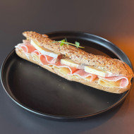 Ingrediente: paine integrala, sunca presata, cascaval, chips.