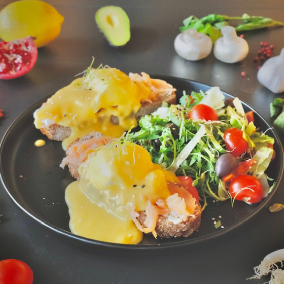 Preparat elegant si echilibrat, Royal Salmon Brunch imbina armonios somonul afumat de calitate superioara cu un ou posat, crema fina de branza si un mix proaspat de salata. Totul este servit intr-o chifla de paine cu seminte, pentru o experienta culinara rafinata, perfecta pentru un brunch savuros.